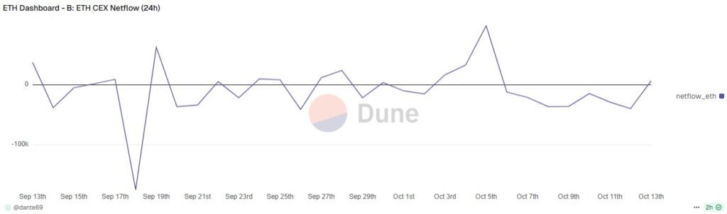 CEX(중앙화 거래소) 로의 이더 순유입도 여전히 감소세이기 때문에 급격한 매도 압력은 낮음