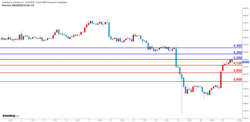 - 상방은 4,200달러 위에서 4시간봉 또는 일봉 종가 안착 시