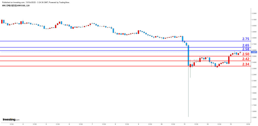 → 2.65 → 2.75달러, 그리고 최종적으로 3달러 재시험이 열릴 수 있습니다. - 반대로 2.50달러가 무너지면