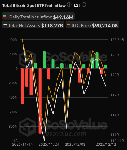 - 이번 주 관찰(12/8 기준): +331,655,270(≈ +332M) 순유입.