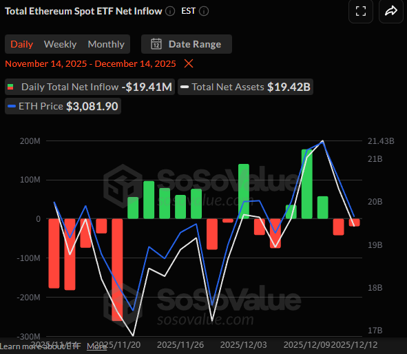 - 최근 집계일 기준 순유입: -$19.41M(순유출)