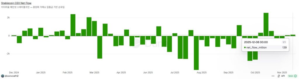 3) Stablecoin CEX Net Flow (거래소 순유입)