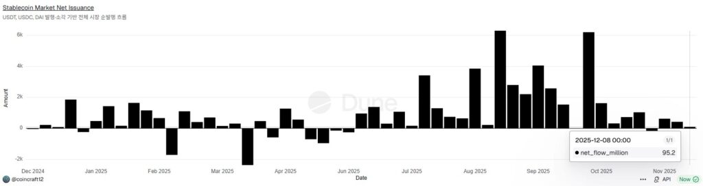 - 이번 주 관찰(12/8 기준): +95.2M(약 +0.95억 달러) 순발행.