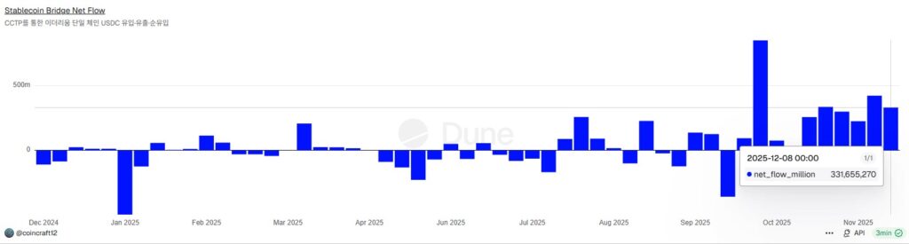 2) Stablecoin Bridge Net Flow (CCTP 브릿지 순유입)