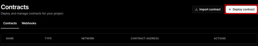 2. Contracts 페이지에서 우측 상단의 Deploy Contract 버튼을 클릭한다.
