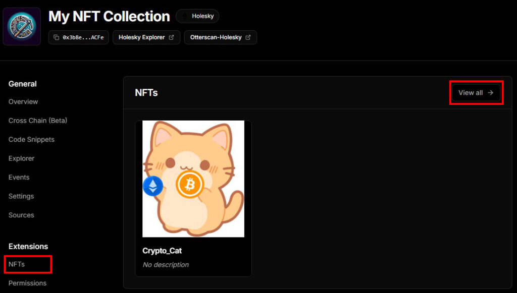 1. 좌측 ‘NFTs’ 메뉴 또는 우측의 ‘View all →’ 버튼을 클릭한다.