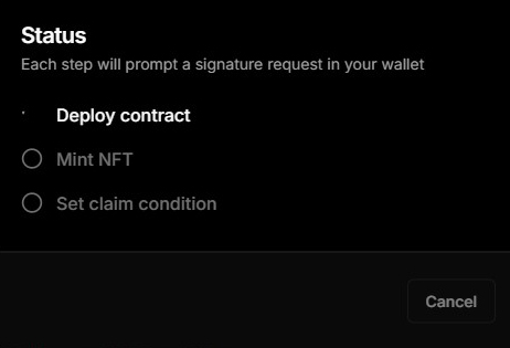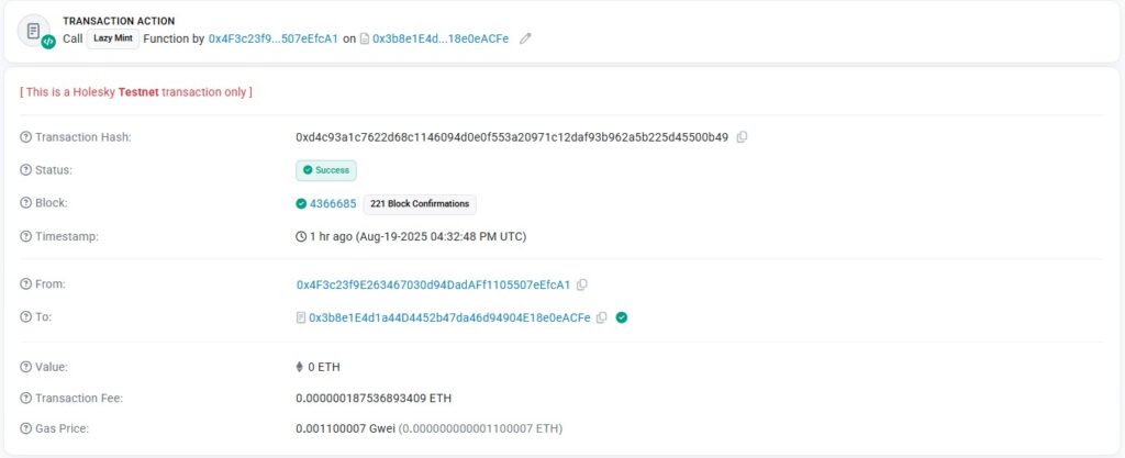 이는 thirdweb 팩토리가 deterministic 방식으로 NFT 컨트랙트를 배포하였다는 뜻이며, 해당 주소는 앞으로 발행되는 NFT들의 거점이 된다.