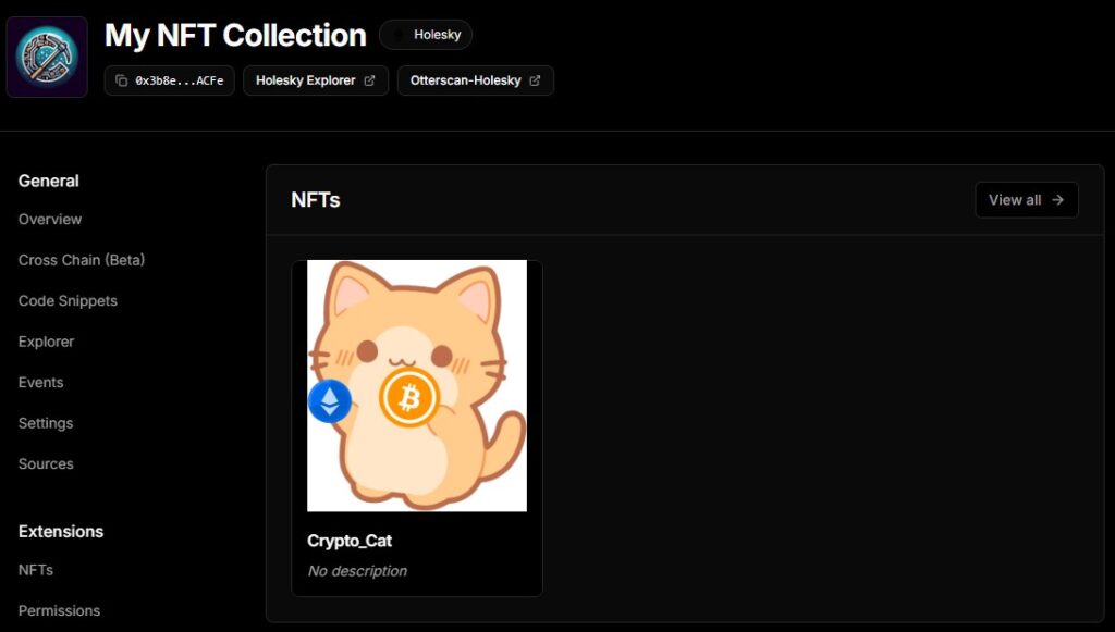 2. 잠시 후 배포가 완료되었다는 메시지가 표시된다. “View NFT” 버튼을 눌러 결과를 확인한다.