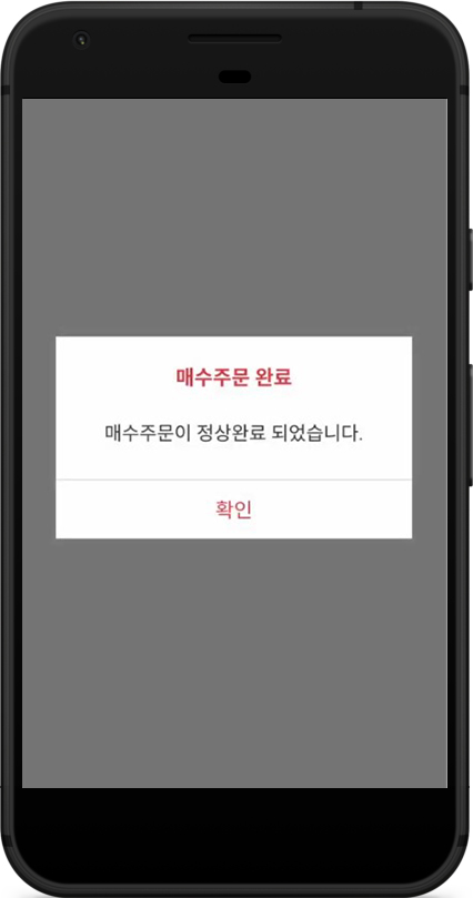 화면에 “매수주문이 정상완료 되었습니다”라는 안내 문구가 표시되면 거래가 성공적으로 체결된 것입니다.