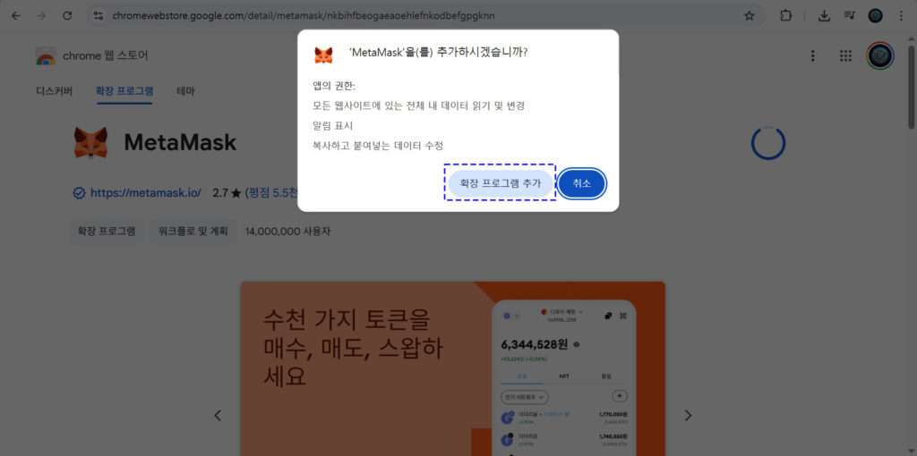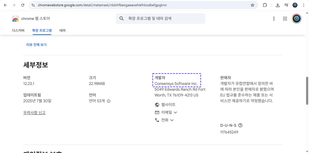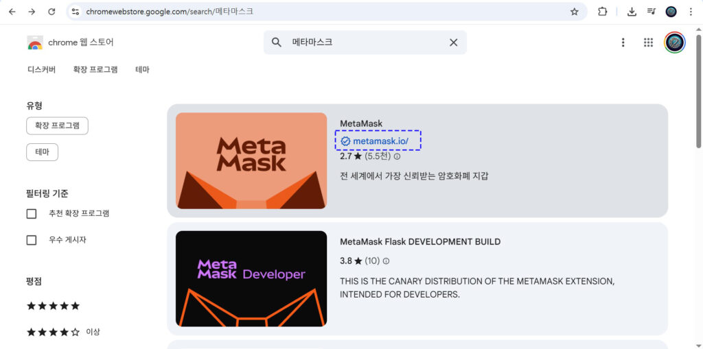 3단계. 메타마스크 공식 확장 프로그램 확인