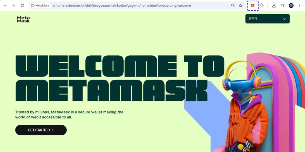 - 이 아이콘을 클릭하면 언제든 MetaMask를 실행할 수 있습니다.